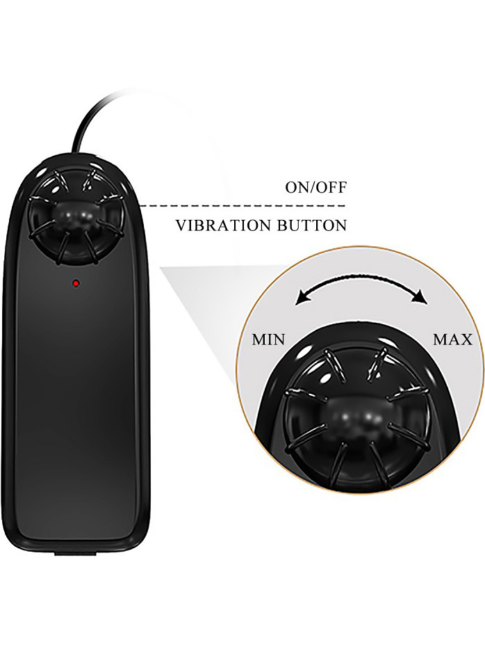The dildo is equipped with a vibrator with multispeed-vibrations that you easily control via the wired control-box. Just turn the wheel to choose the speed that suits you best at the time.