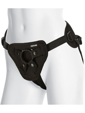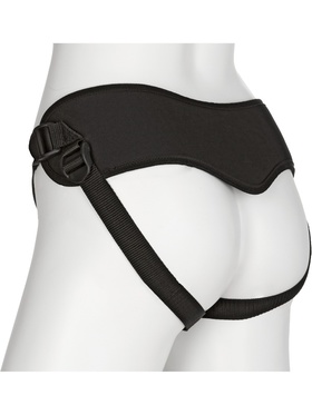 The harness is compatible with the Vac-U-Lock system and comes with a matching plug. It also works with standard strap-on dildos thanks to the 3 included O-rings in different sizes. Adjustable straps ensure a customized fit for most body-types – suitable for both men and women.