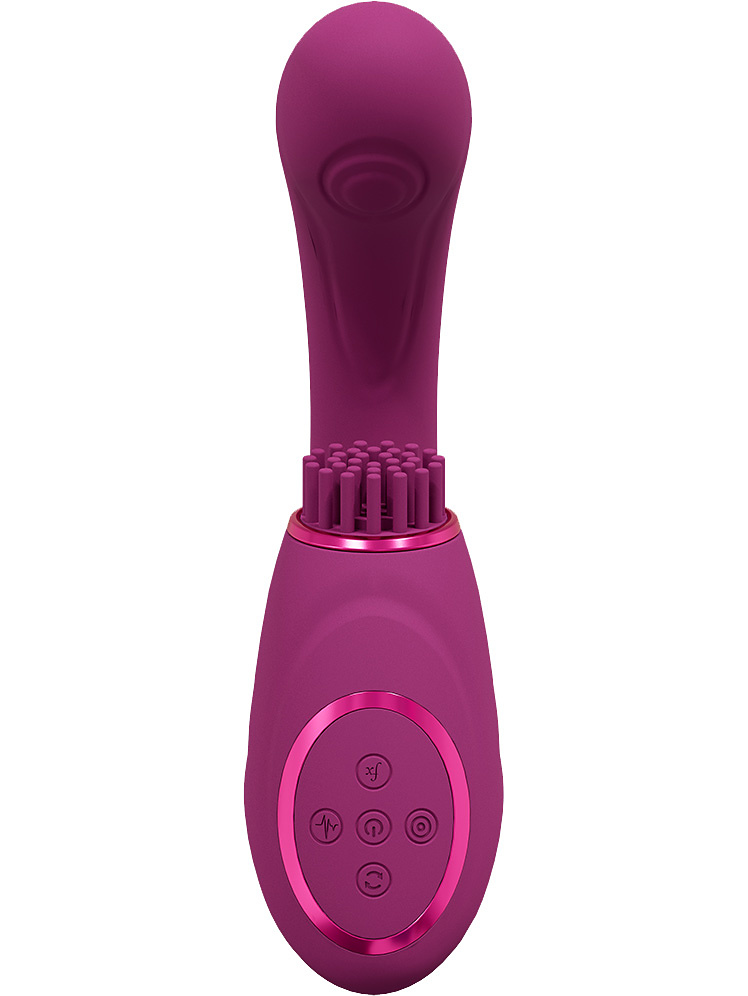 The soft brush on the small stimulator vibrates and gently massages your clitoris. At the same time, the curved shaft will target your G-spot to stimulate with vibrations and Pulse Wave that provides a pulsating stimulation.