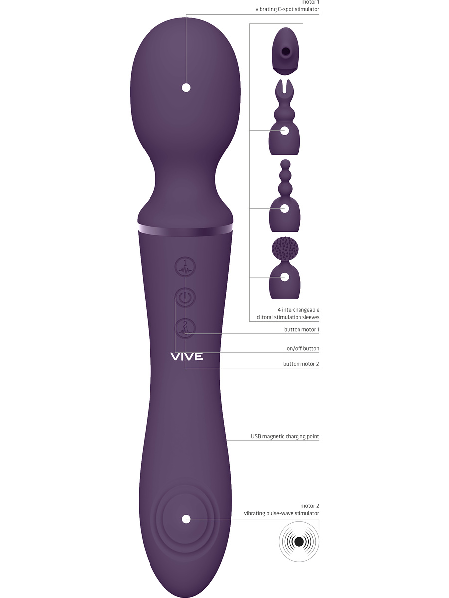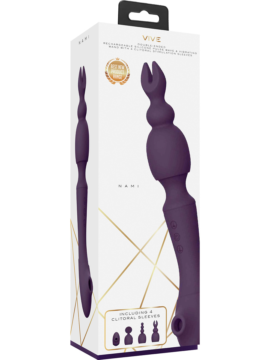 Vive Nami, Pulse-Wave Wand Vibrator with Clitoral Sleeves, purple