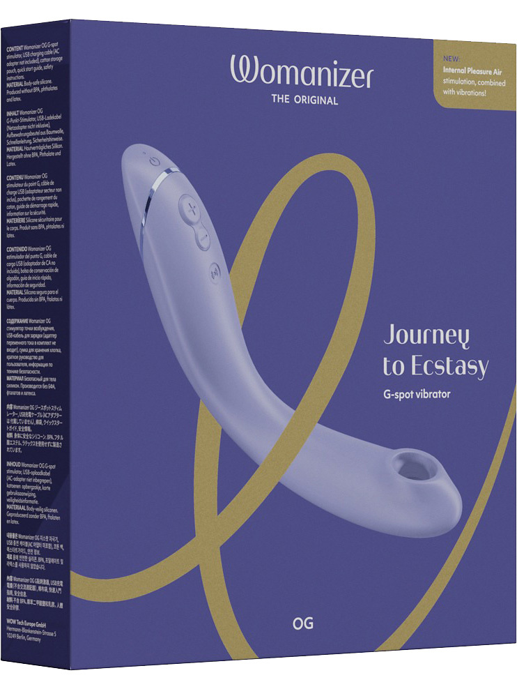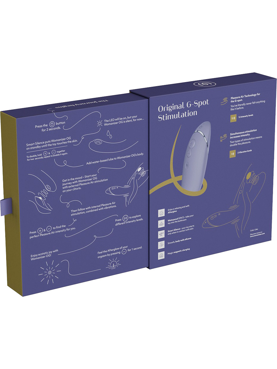 The Womanizer OG is the first G-spot vibrator to combine targeted Pleasure Air and vibrations for a powerful and orgasmic ride. Suction-like air pressure and vibrations will pamper your G-spot with unprecedented pleasure. Two types of functions clearly mean twice as much enjoyment.