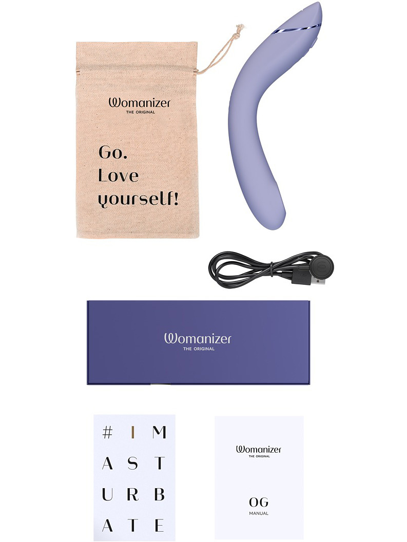 The Womanizer OG comes with a magnetic USB-cable, manual, safety instructions and a cotton storage bag.