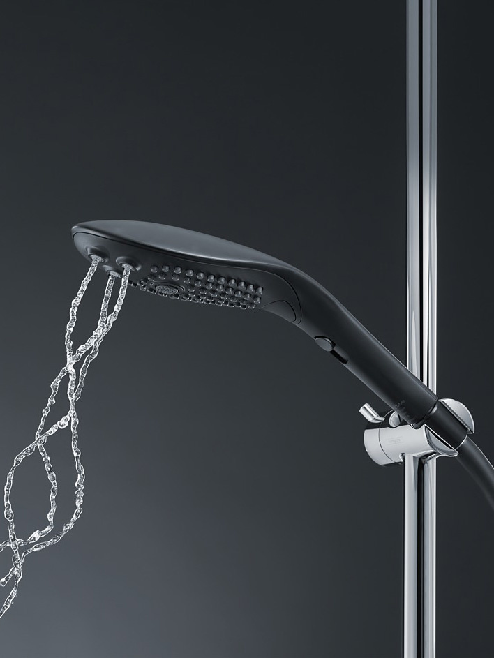 The shower head is designed for convenient one-handed control for easy water massage-stimulation.