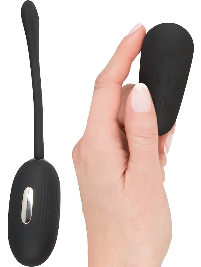 This is a vibrating egg that delivers both vibrations and electrical impulses. The egg is decorated with grooves for increased stimulation. Use it to stimulate your insides or for nerve-wracking training of the pelvic floor. The flexible silicone strap allows you to easily remove the egg exactly when you want.