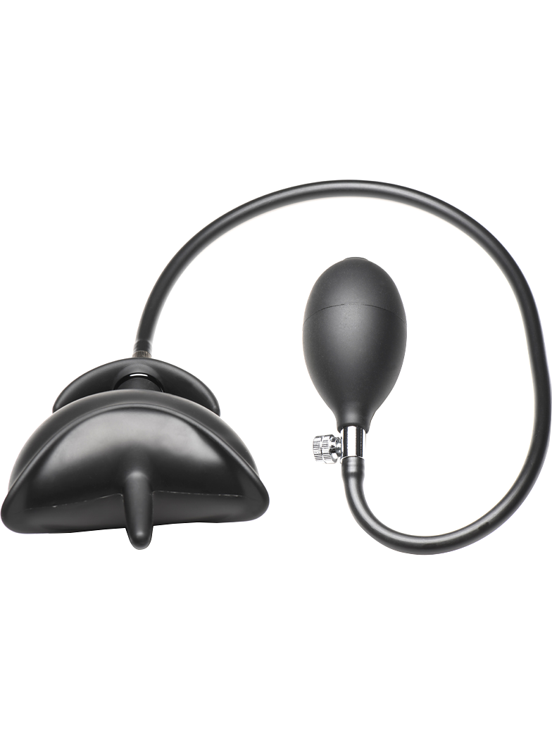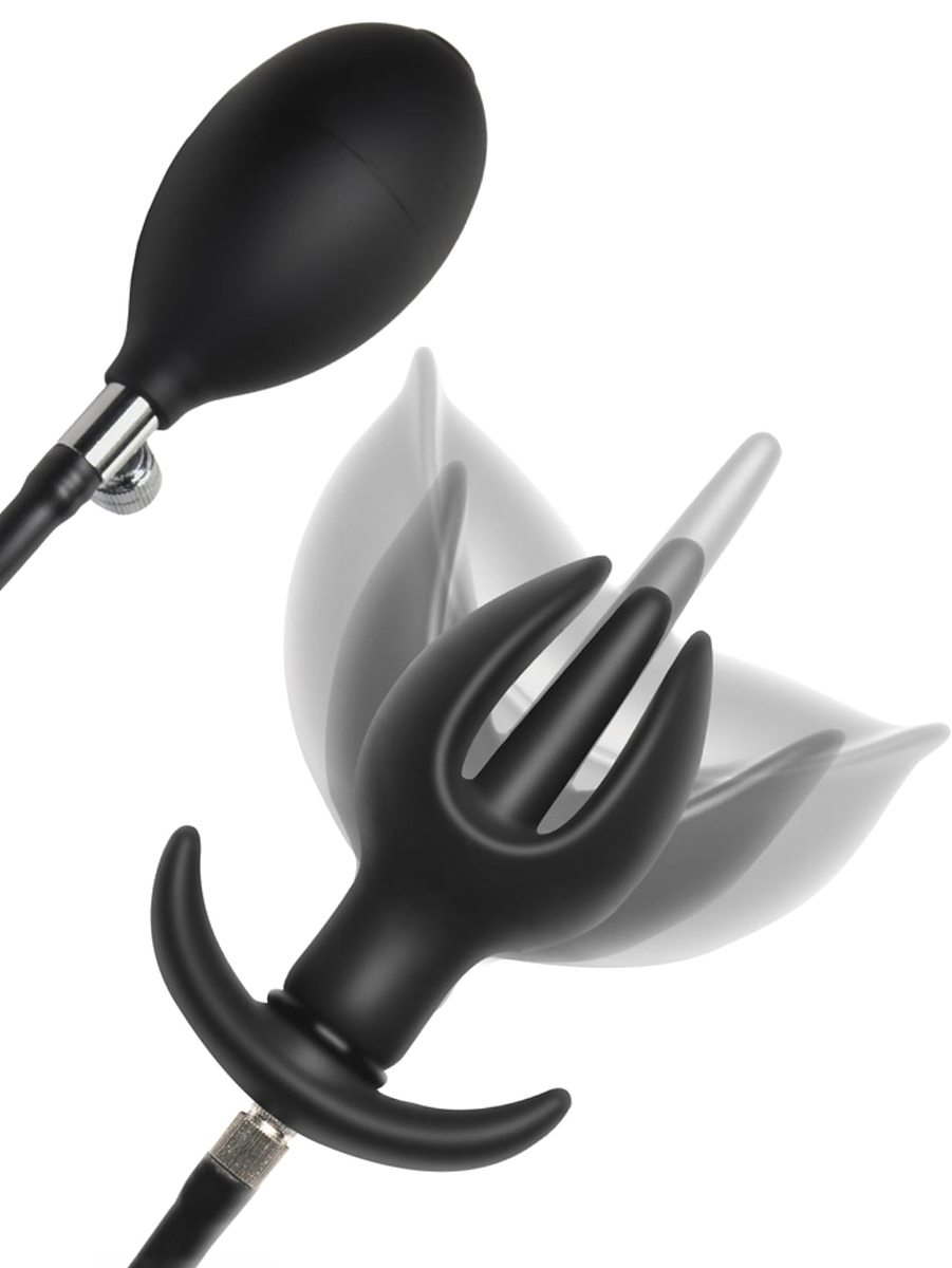 This is an inflatable anal plug in smooth and soft silicone that has a tapered top in the middle and two rounded parts on the side for a comfortable insertion. As you pump up the plug, intense pressure builds up from within to press against the internal sphincter while the anchor-shaped base holds the plug securely in place.