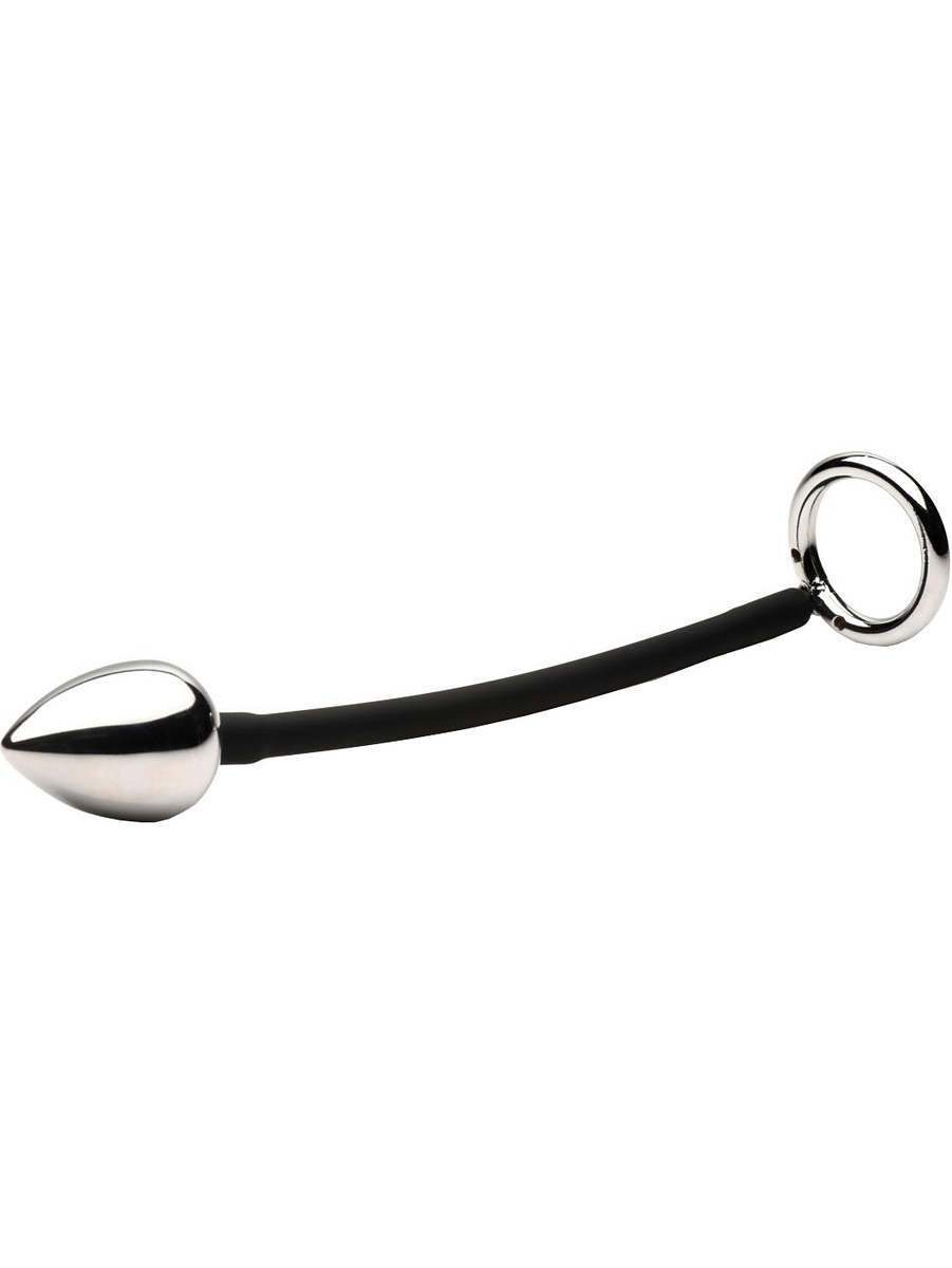 The tapered top of the plug provides a comfortable insertion and the smooth aluminum alloy allows for easy sliding in with a little water-based lube. At the other end of the silicone strap is an iron ring that slides over your shaft and acts as a penis ring so you can experience a stronger and longer-lasting erection while stimulating your prostate.