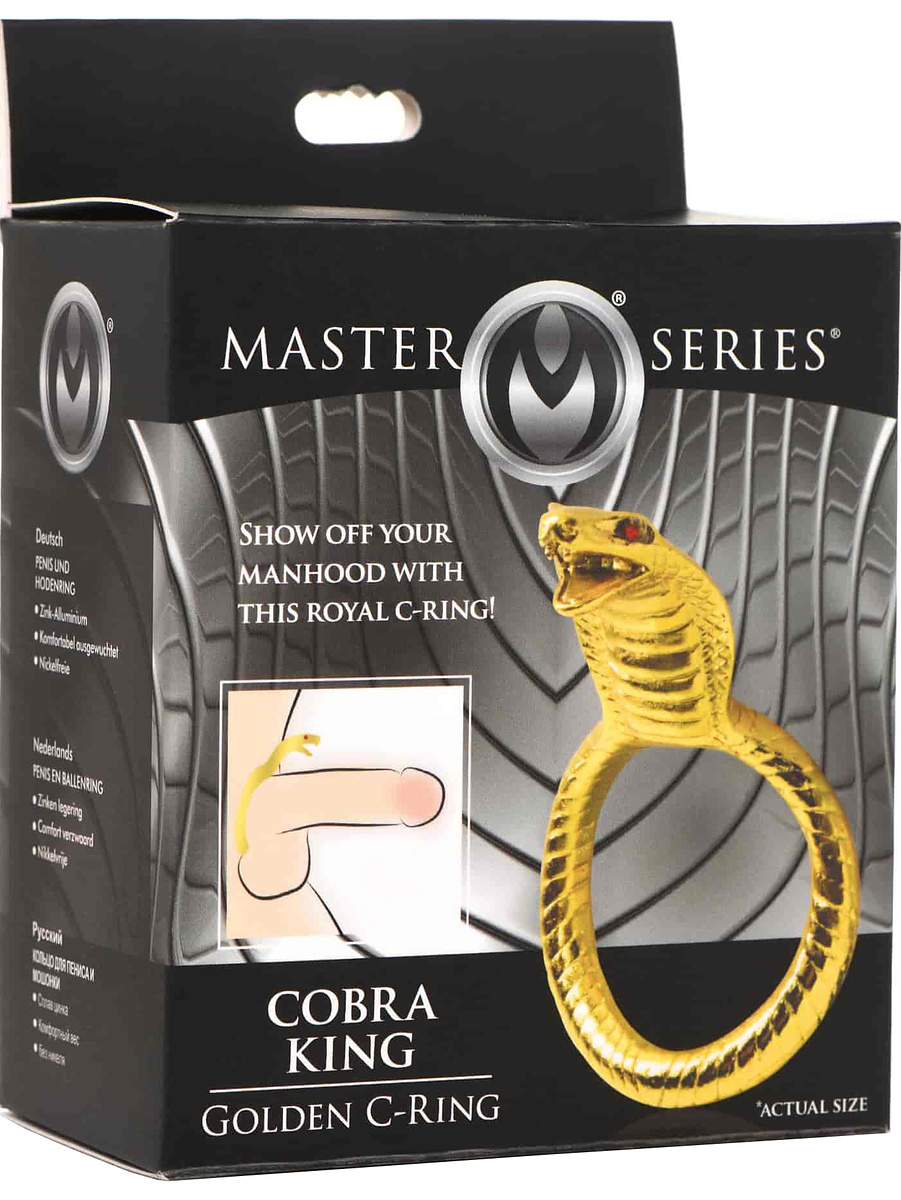 Surprise your partner with this royal cockring! With a golden cobra ring and glowing red eyes, your partner will be impressed by the stunning snake in front of them – and it'll make your trouser snake look good too!