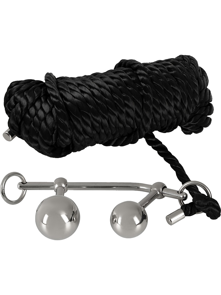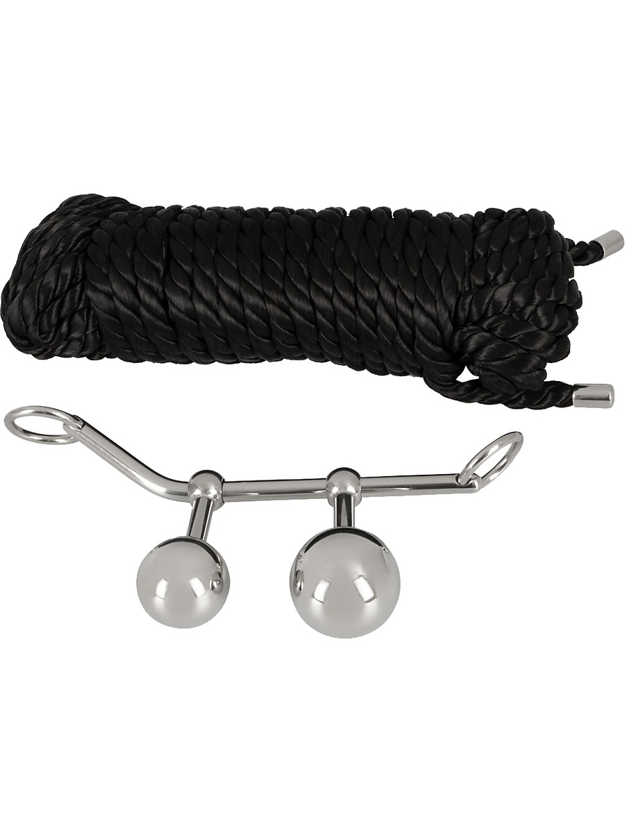 This unique set of bondage plugs and 10 meters of rope fills you vaginally and anally in a pleasant way and ensures that they stay in place.