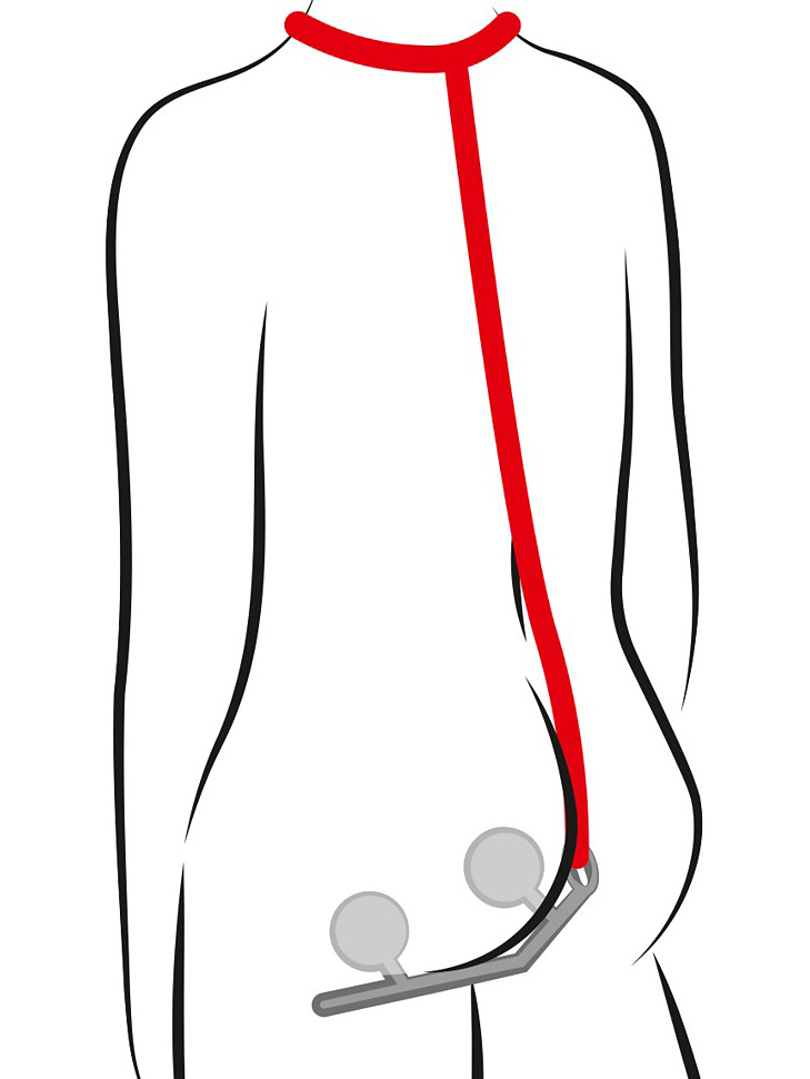 There is also a ring at each end of the rod. The included bondage rope can be attached to the rings and then tied around the body/neck to hold the bead-shaped plugs in place.
