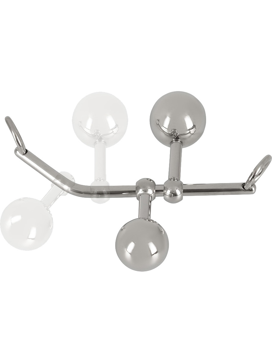 The two ball-shaped plugs of different sizes can be slid up and down on the bar, allowing the position to be adjusted to suit the wearer. The balls can also be unscrewed and replaced.