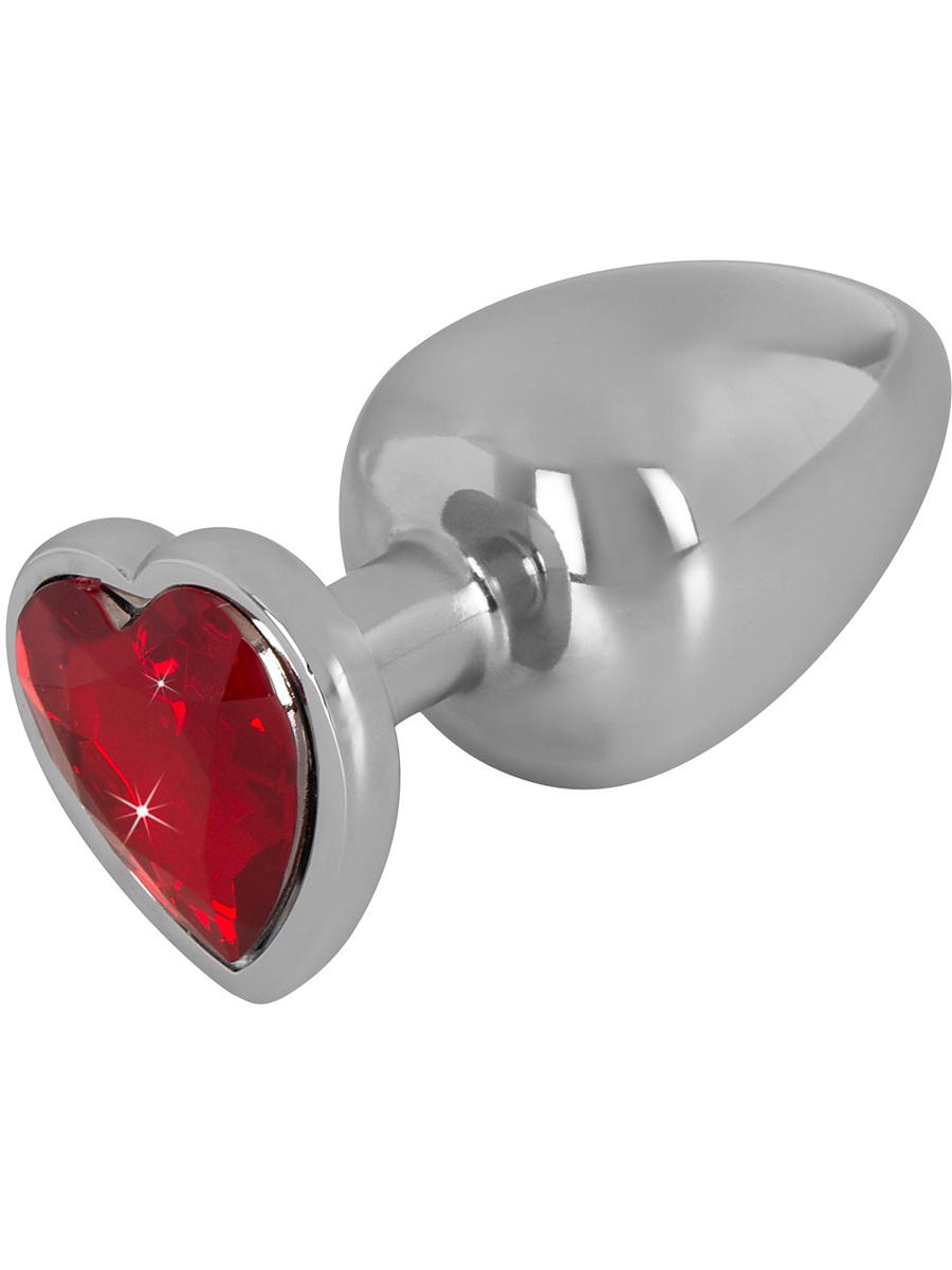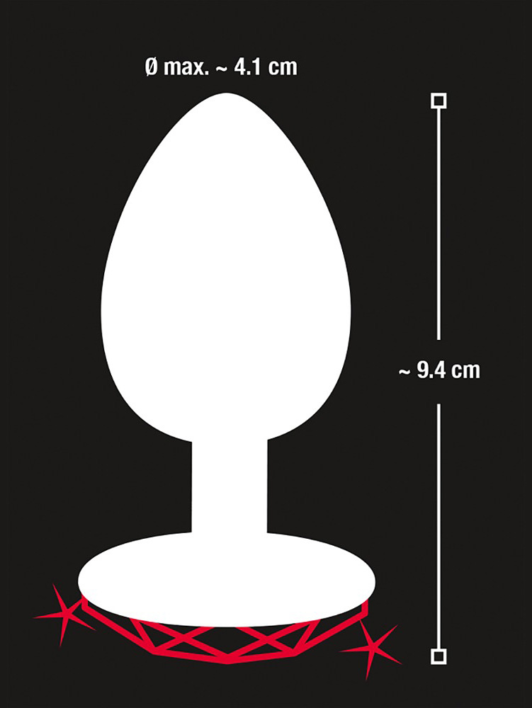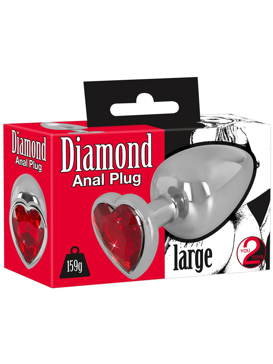 At the bottom it has a wider base which prevents it from slipping too far in. It can also be used as a handle, giving you full control over your stimulus. At the bottom you see a shiny, heart-shaped diamond that glows in red and makes this butt plug a stunning anal decoration as well.