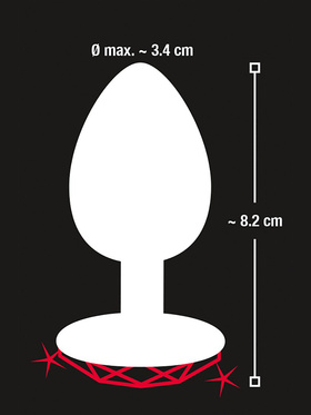 The plug features a flared base that prevents it from going too far in. It also functions as a handle, allowing you to control every movement. The base is adorned with a red, heart-shaped gem that adds a luxurious and sensual touch.