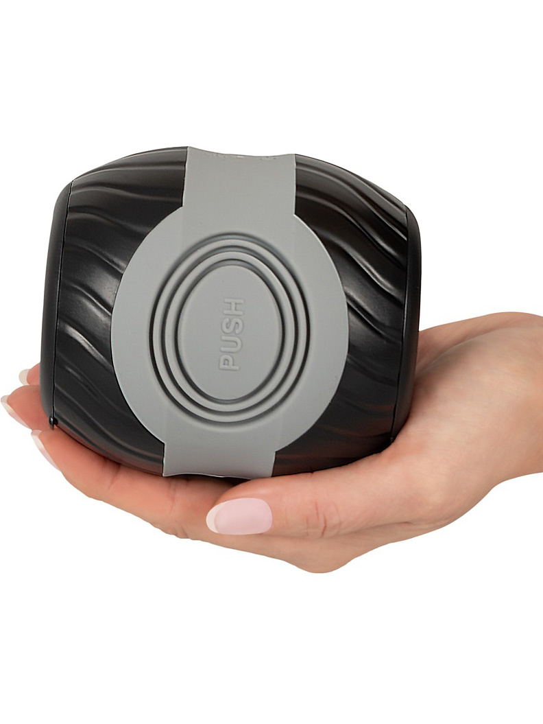 The inside has soft knobs and grooves for an intense stimulation. Inside the compact design are 2 powerful motors that deliver reliable vibrations. Conveniently control its 10 different vibration-modes via the buttons on the toy. It also has squeezable surfaces on the sides that can be easily pressed together for an even tighter experience.
