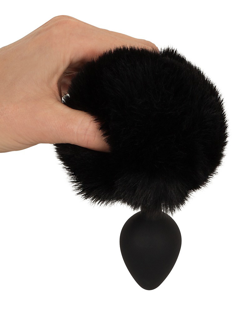 You2Toys Fluffy Bunny Tail Butt Plug, medium, black