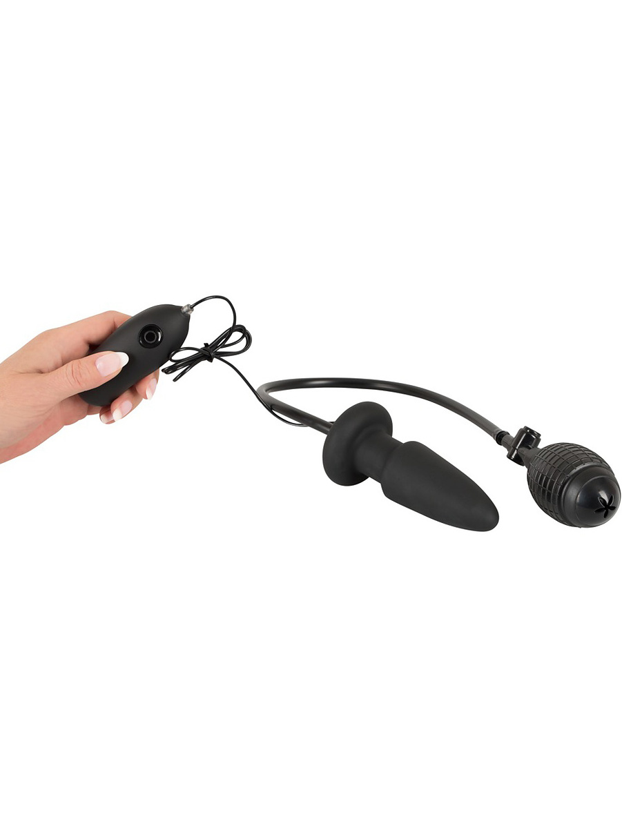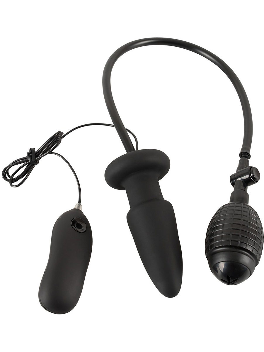 This is an inflatable and vibrating butt plug with 7 vibration-modes that you easily control with the wired remote.