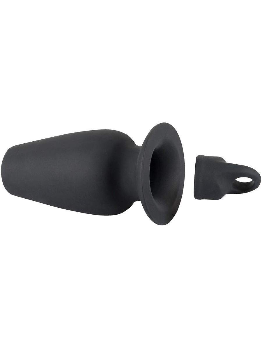 As the plug is hollow, you can let your partner experiment and perhaps pour fluid through the tunnel and into your anus. You also get a cork for the plug that you can use to close the tunnel and prevent the liquid from leaking out.