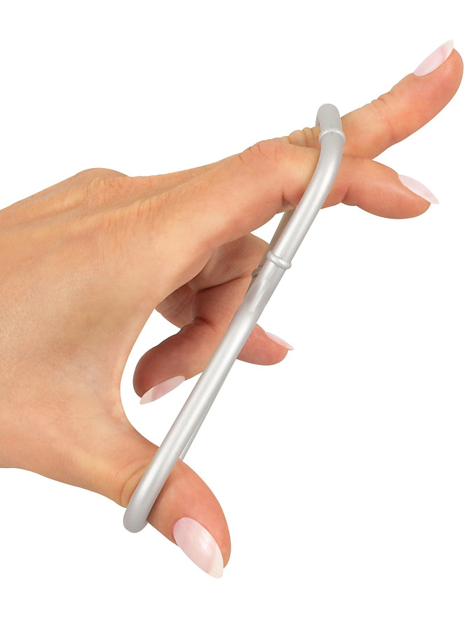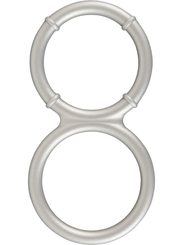 This is a very stretchy silicone penis- and scrotum-ring with a cool metal look but with the comfort of silky-smooth silicone. The rings can be worn around the penis and scrotum or placed as a double-ring only around the penis or scrotum.