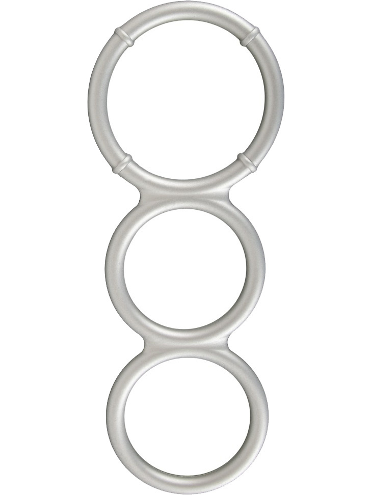 Metallic Silicone Triple Cock and Ball Ring - Cool look and perfect erection-support!