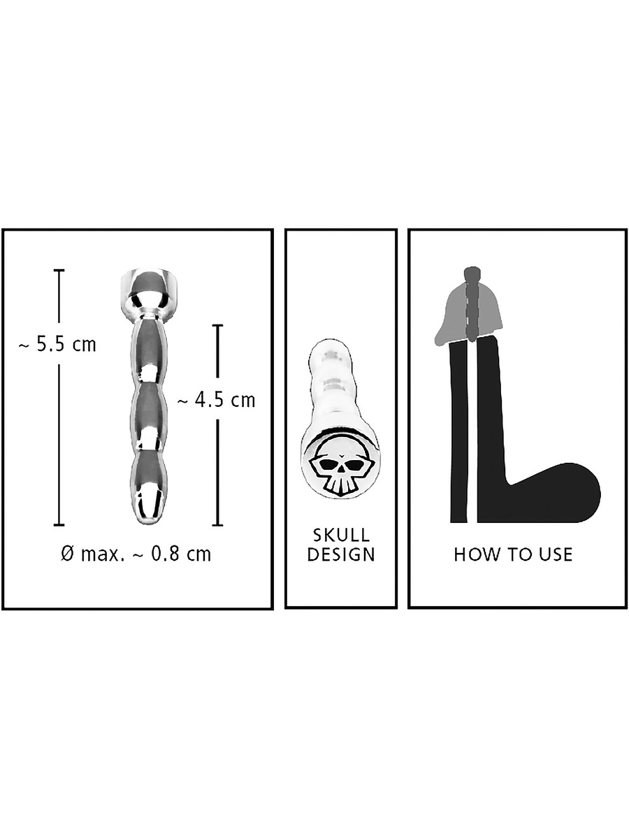 This is an exciting penis plug, made of stainless steel, for those who want to achieve an intense stimulation of the urethra. Its skull at the bottom gives it a delicious and exciting look.