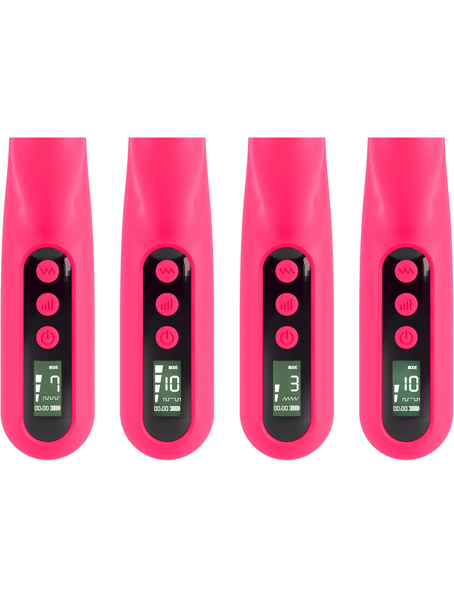 The Pink Sunset Rabbitvibrator offers the best control for double stimulation of the vagina and clitoris with its easy-to-read digital display. You always get a precise overview of its 10 vibration-modes, 4 intensity-levels as well as the battery-life and operating-time.