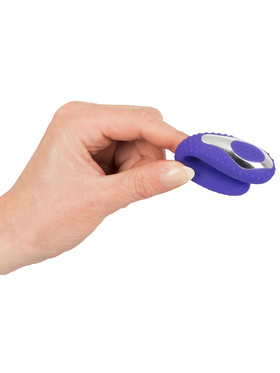 Its tight, u-shaped design attaches perfectly to the side of the mouth. Its silicone-surface is covered with bumps that give your partner's penis extra stimulation. Choose between five different vibration-modes that all stimulate him pleasantly. You will find the button on the outside.