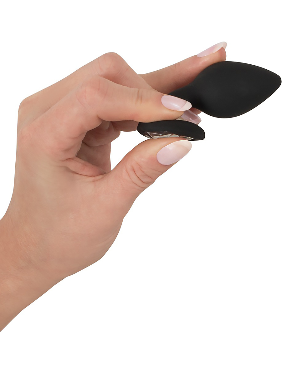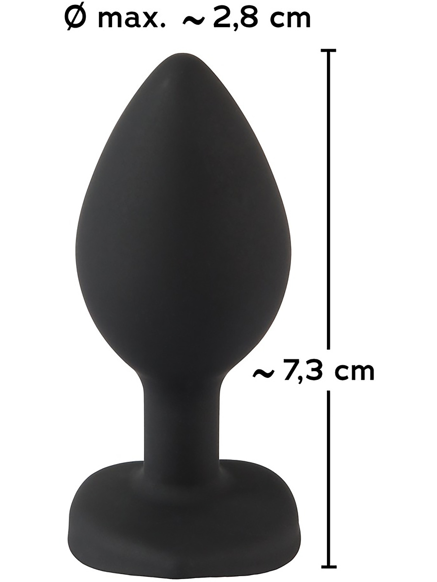 This is a cone-shaped butt plug in silky-smooth silicone with a tapered top that provides a comfortable insertion. The narrow and flexible neck means that it sits comfortably in place, while the heart-shaped base prevents the plug from slipping in too far. In the heart-shaped base there is also a shiny and transparent stone that gives it a delicious look.