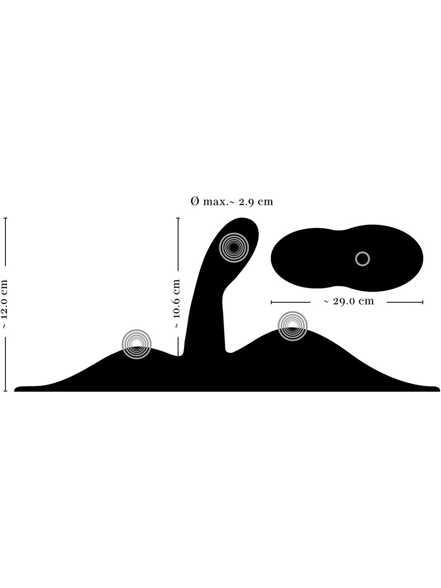 With 3 powerful motors, you get the opportunity to experience triple stimulation. The shaft and the two bulges offer 7 exciting vibration-modes that can be controlled separately or combined with each other. All functions can be easily controlled via the wireless remote, which has a range of up to 10 meters.