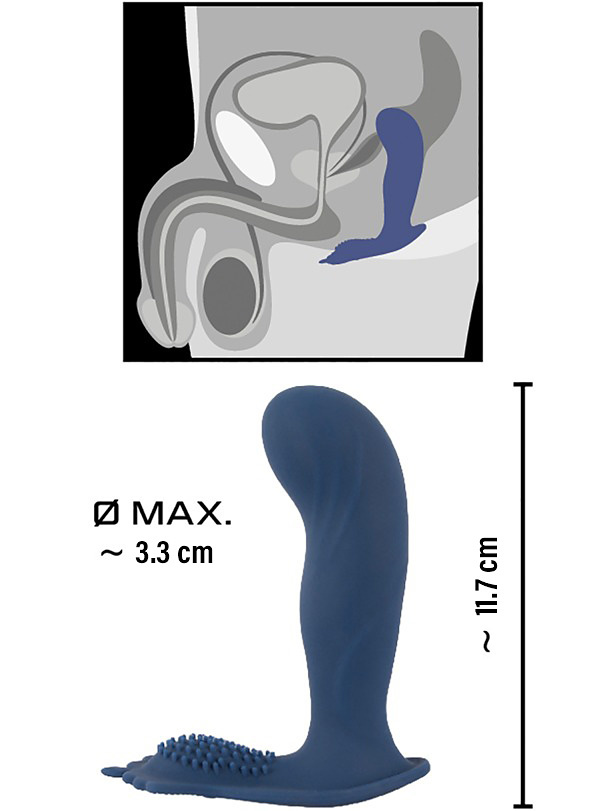 This is a silky-smooth silicone prostate-vibrator with a flexible and knobby base that massages the pelvic floor. The shaft is adorned with soft grooves for added stimulation while the curved tip targets your prostate.