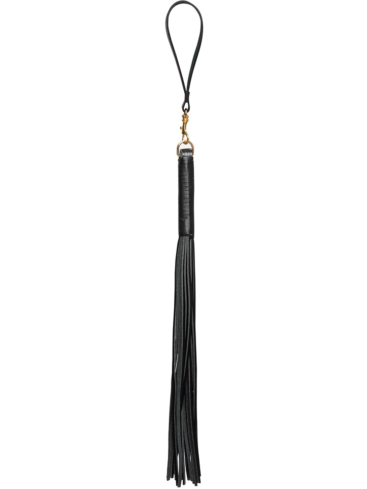 The whip is made of genuine leather (chrome-free tanned) and gold-colored metal details.