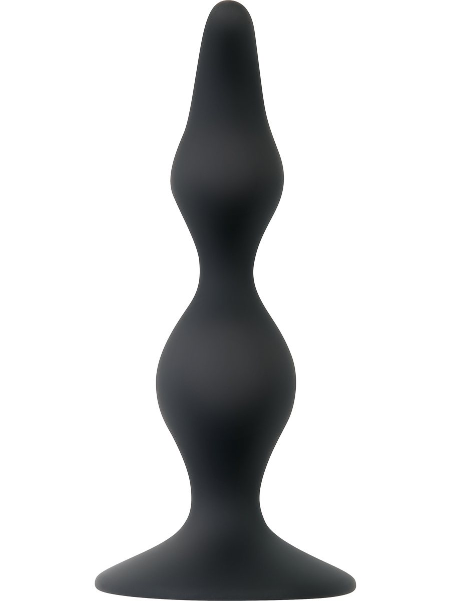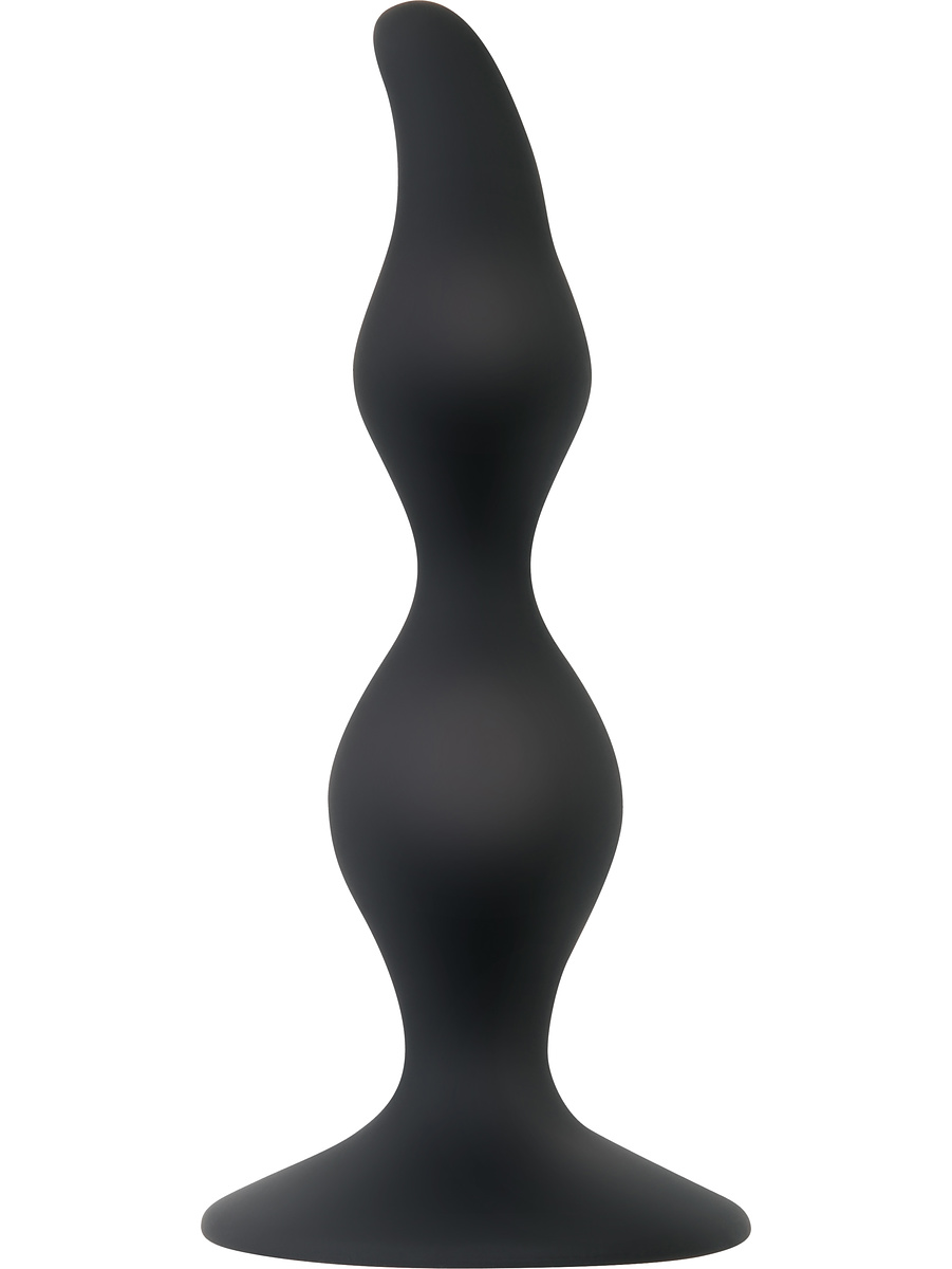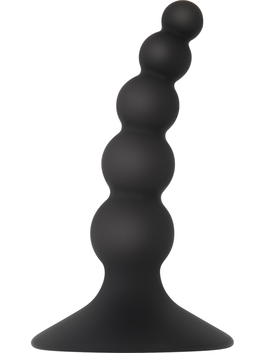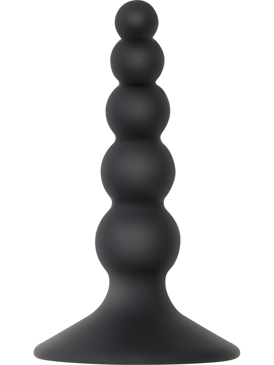 Five-Bead Prostate Stimulator: Sized balls for relaxing prostate exploration. The flexible shaft follows the shape of the body and the suction cup prevents it from slipping in too far and allows you to enjoy it handsfree. Length: 9 cm. Pen. length: 7.6 cm. Diameter: 2.5 cm.