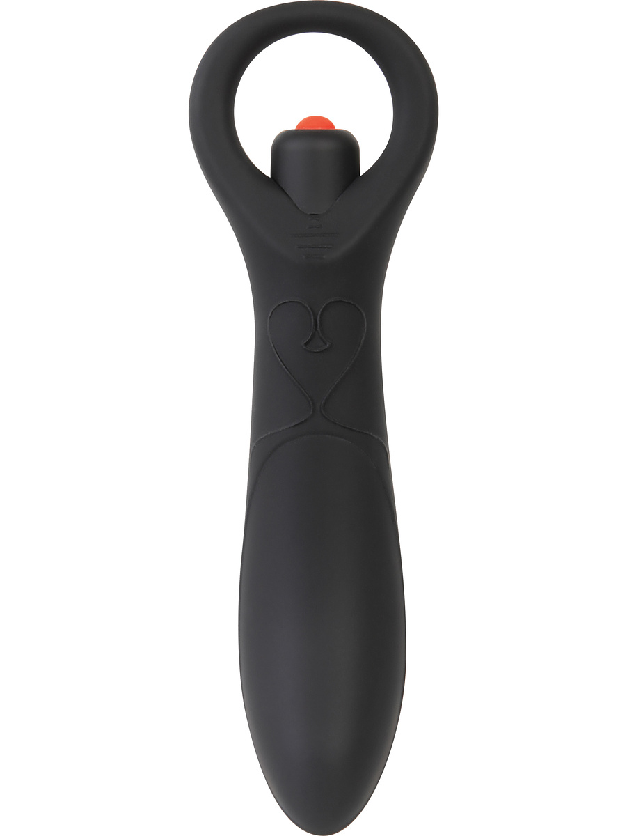 Prostate Stimulator with Penis Ring: A bulging design that targets the prostate. The flexible design follows the body's shape and enables comfortable positioning. The cockring provides a larger and longer-lasting erection. Pen. length: 9.5 cm. Ring inner diameter: 3.8 cm.